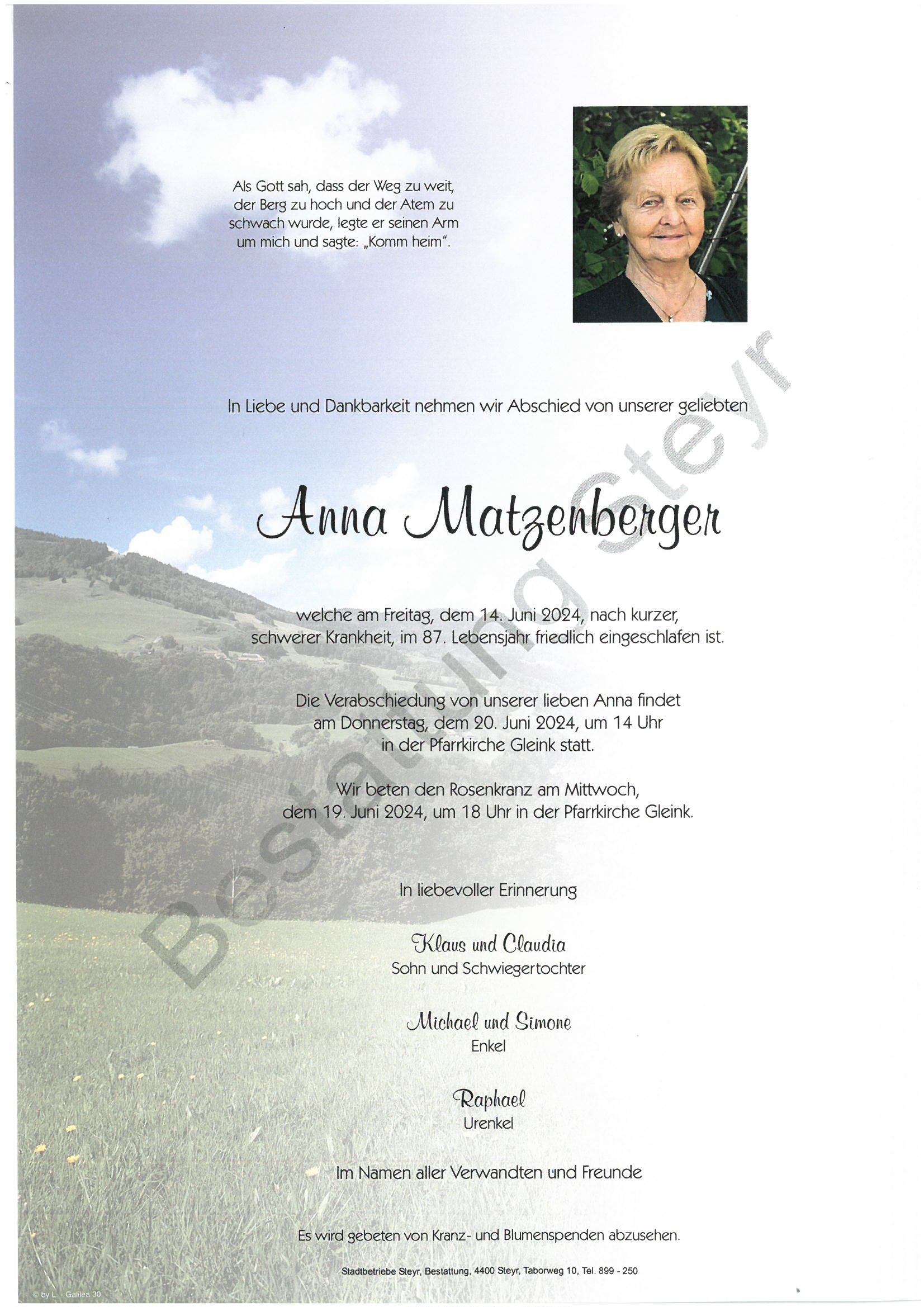 Bestattungsbüro: Taborweg 10, 4400 Steyr