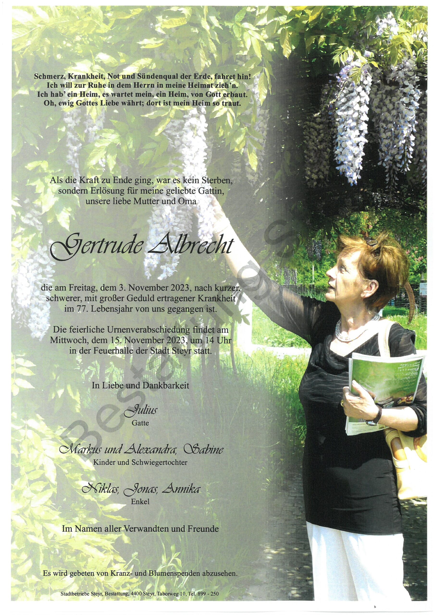 November 6, 2023 Gertrude Albrecht