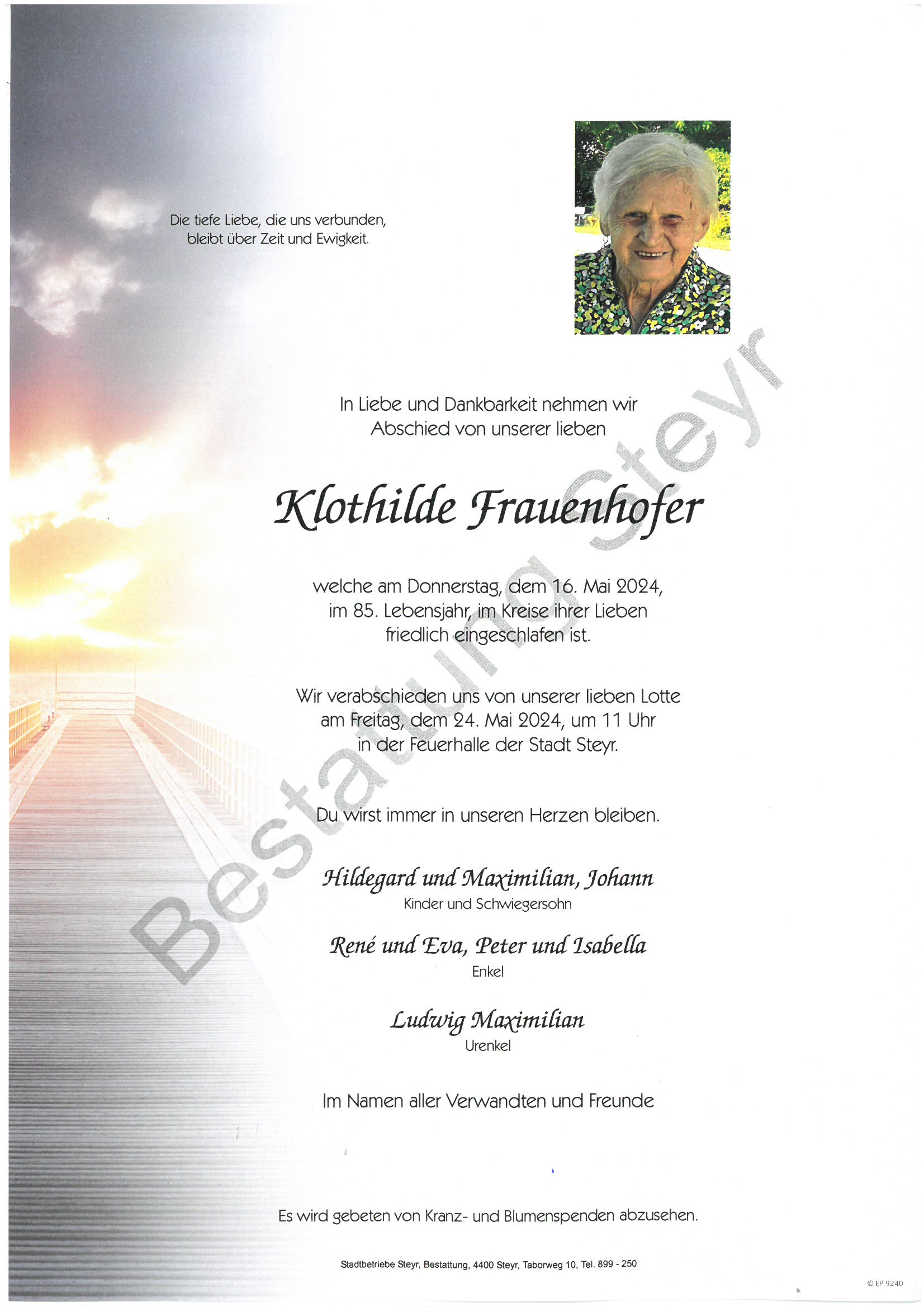 Mai 17, 2024 Klothilde Frauenhofer