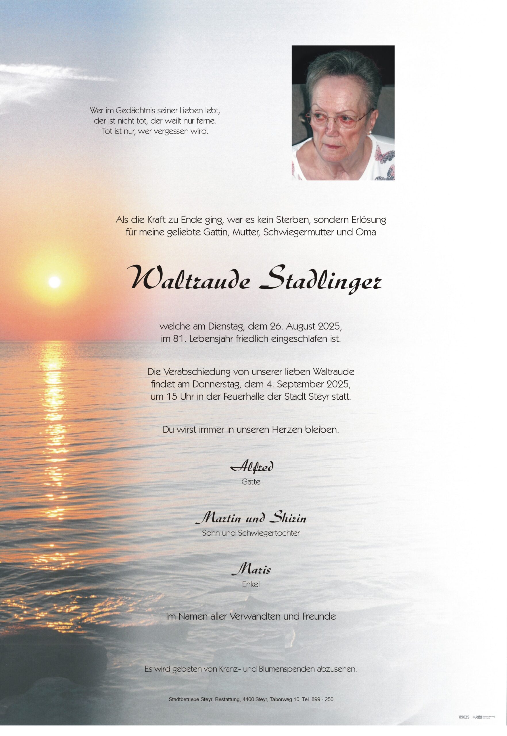 August 26, 2025 Waltraude Stadlinger